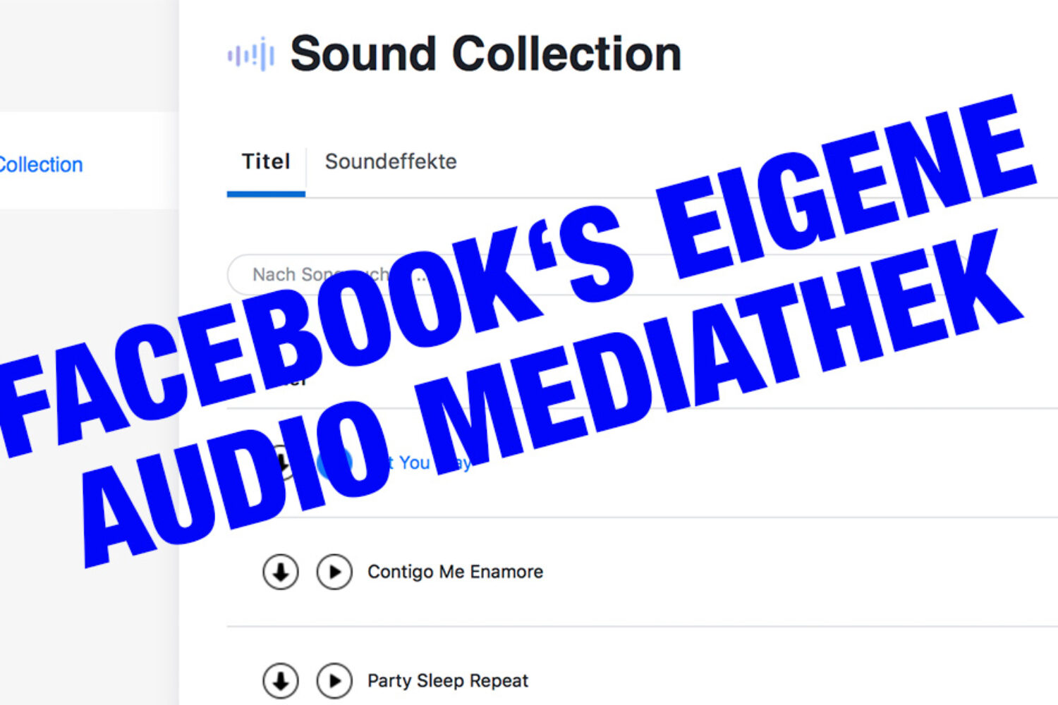 Facebook hingehen hat nun begonnen eine Mediathek für normale Musik von teils unbekannten Künstlern (ähnlich wie bei YouTube) bereit zu stellen und nennt sich „Sound Collection„.